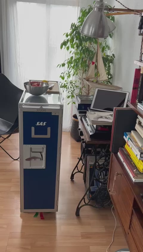 Nuestros trolleys reciclados de aviación, forman parte de nuestra labor medioambiental. Cada uno de estos trolleys ha sido cuidadosamente seleccionado y transformado en una pieza de mobiliario funcional y elegante.